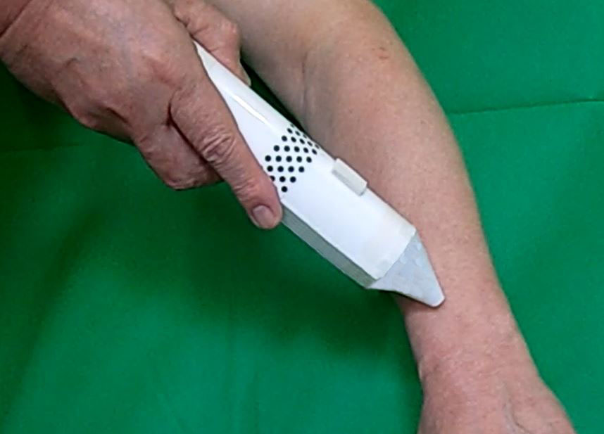 下記の商品はインターネットで販売されているものですが、全て患部に当てる方法なため、平らな皮膚のところなら対処できるが、狭いところや入組んだところには対処が難しい。